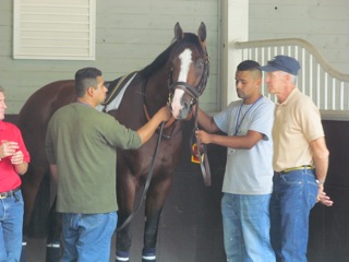 That begins a Horse Racing Nation which includes many of my photos and a video from Belmont Park. I spent several days covering the Belmont Stakes by visiting I’ll Have Another’s barn, observing runners in the paddock, watching morning works, and hanging with the media in the press box. Here is the HRN.com link to the full article The_Sights_and_Sounds. The article is based on these photos.